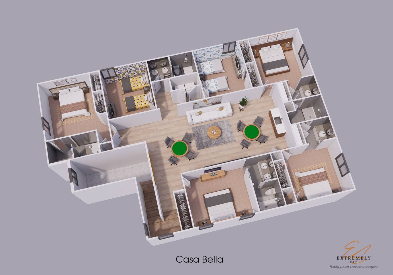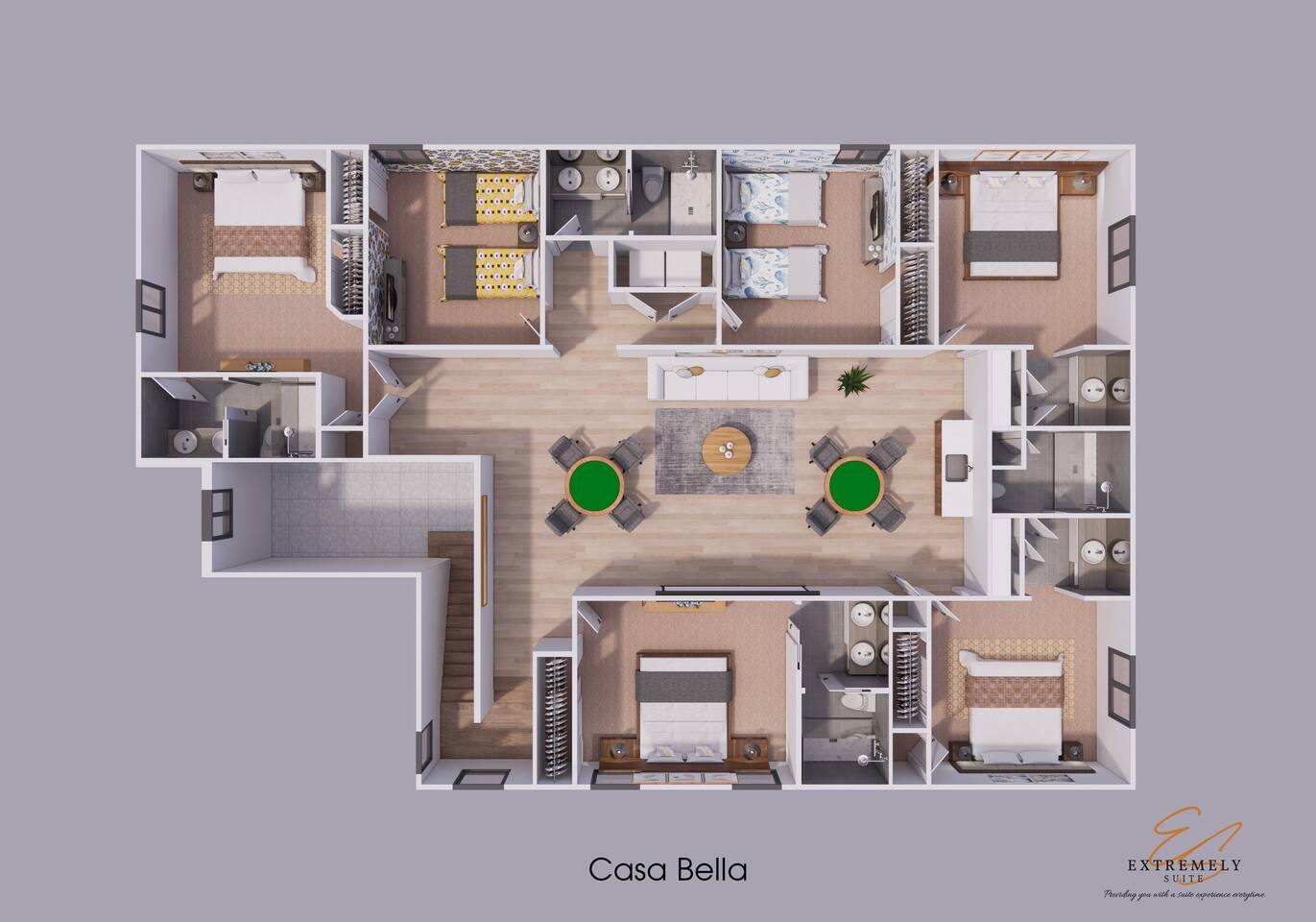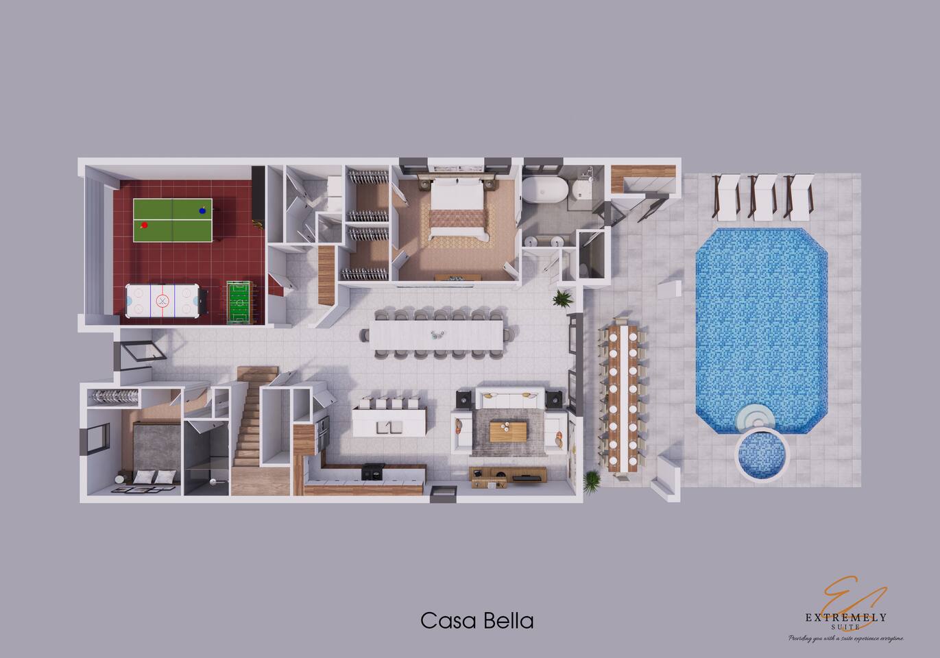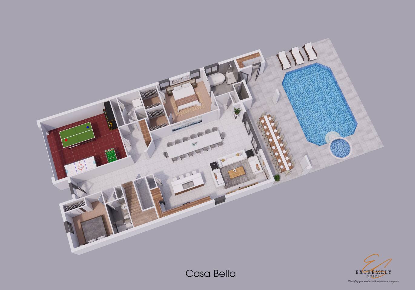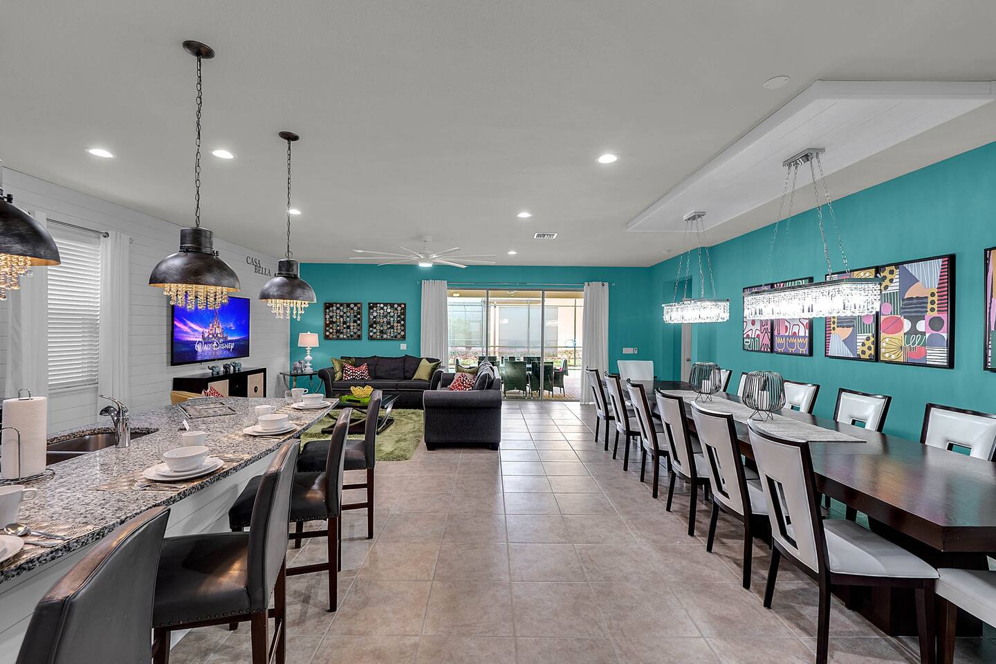 Professionally designed and furnished by one of the country’s foremost design experts, Casa Bella is one of Florida’s best vacation properties. The property has all that a family needs for a completely immersive entertainment experience. With a swimming pool, luxurious bedrooms , themed kids rooms, game room, and a theater room, you can spend a whole day relaxing or having fun. With 4,000+ sq. ft. to share with your family or group coupled with the pool deck, this home holds up to 16+ guests.