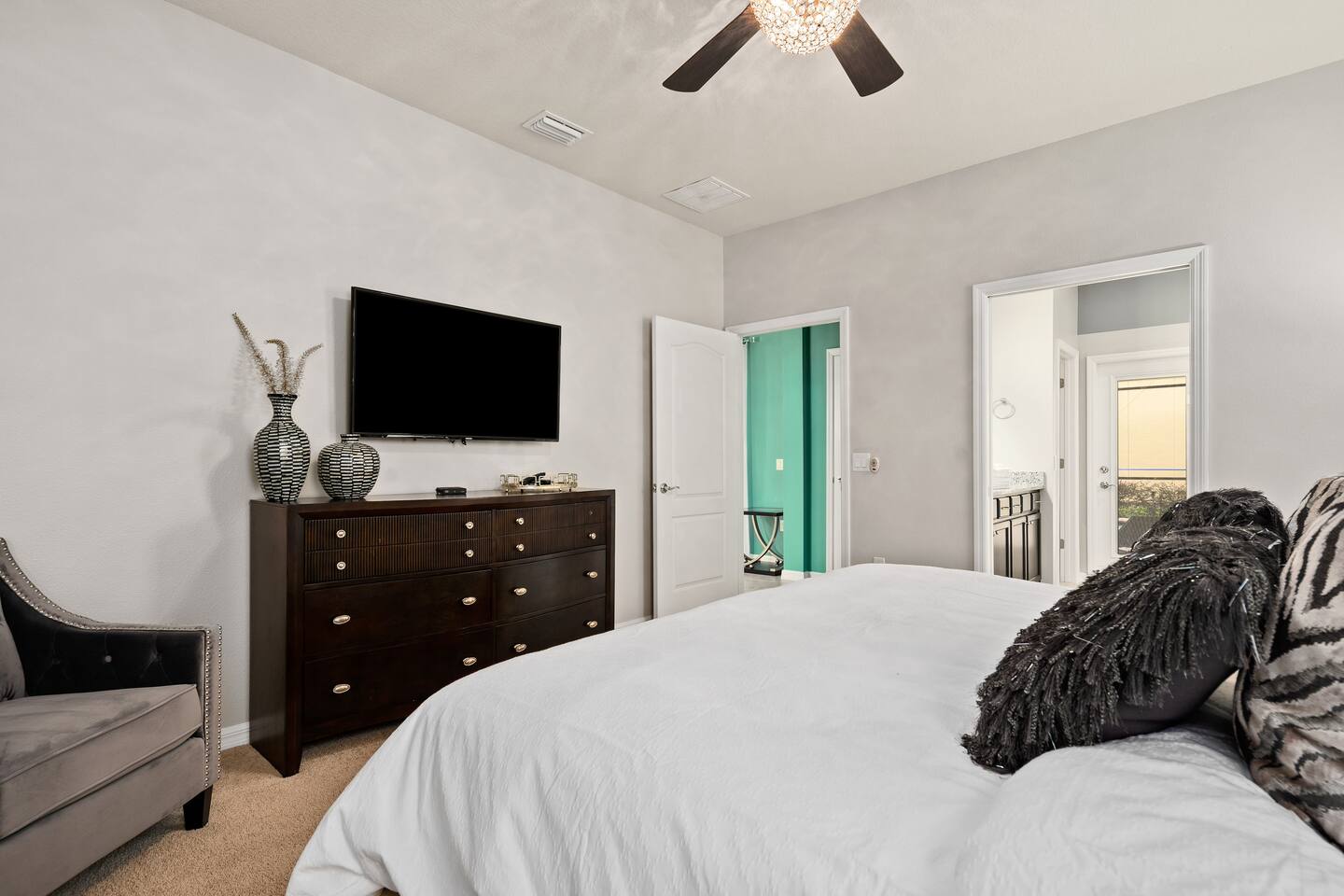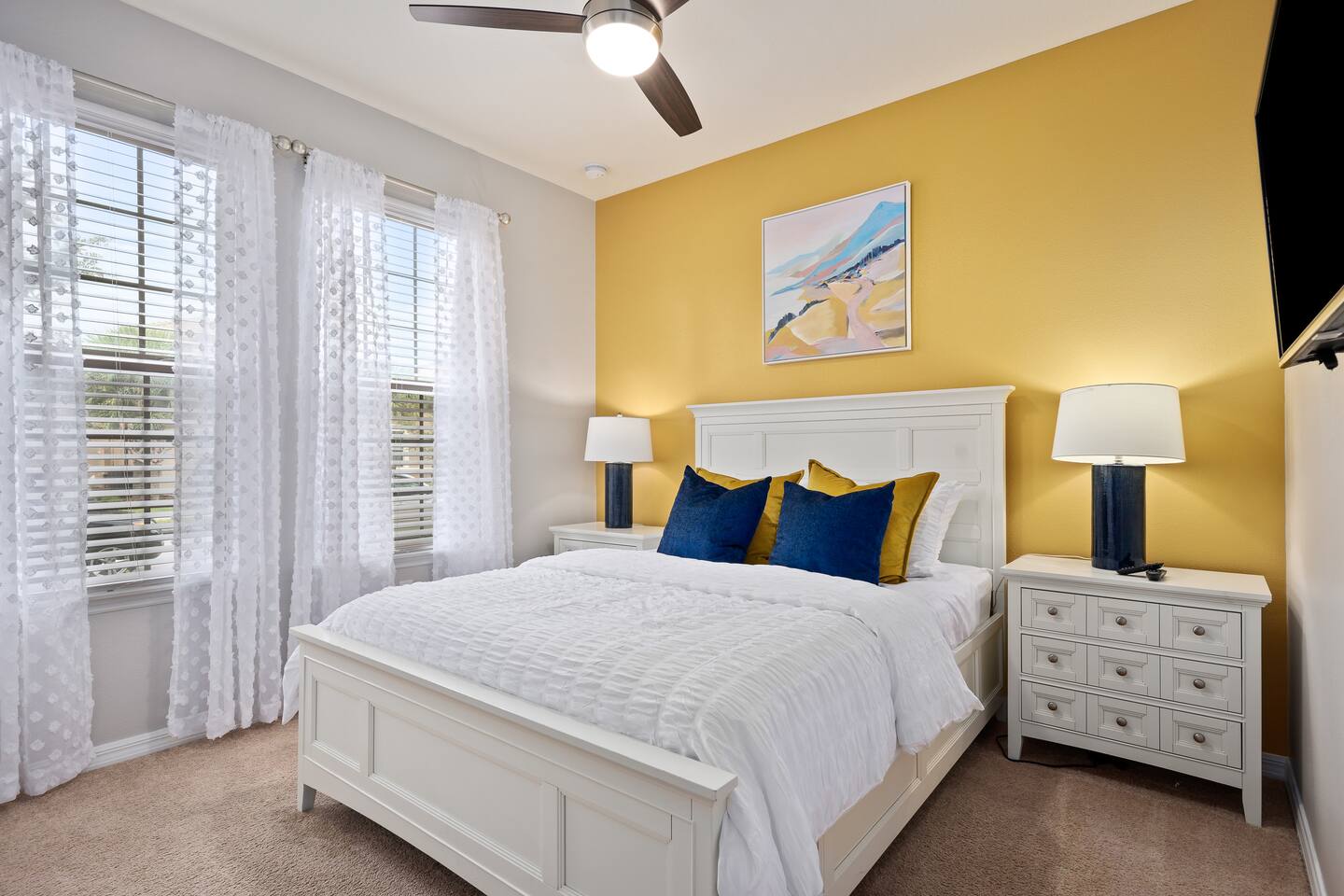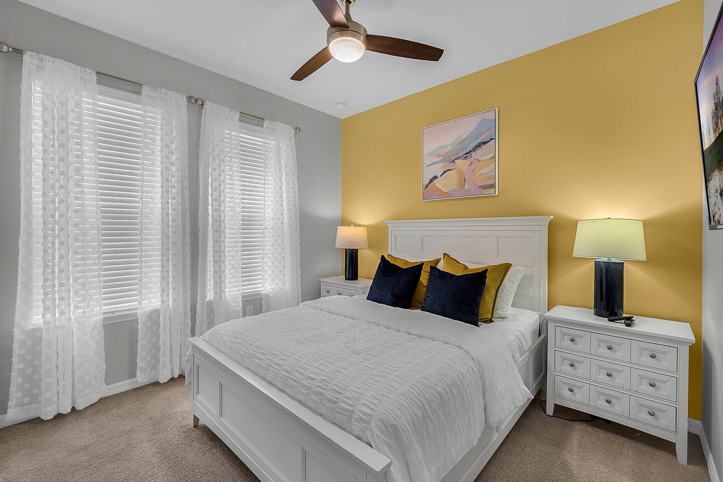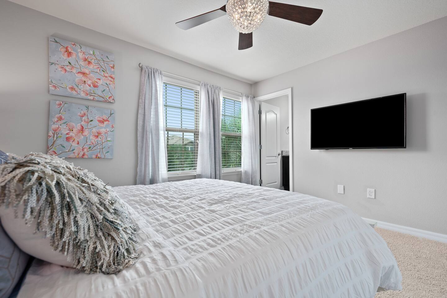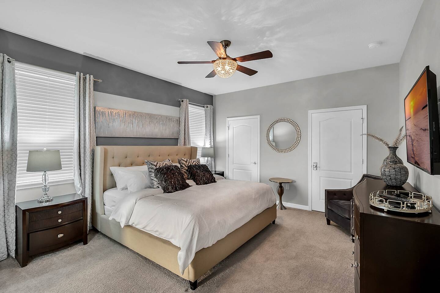 Professionally designed and furnished by one of the country’s foremost design experts, Casa Bella is one of Florida’s most unique vacation properties. The property has all that a family or large group needs for a completely immersive entertainment experience. With a private swimming pool, luxurious bedroom furnishings, themed kids rooms, game room, and a theater room, you can spend a whole day relaxing or having fun. With 4,000+ sq. ft. to share with your family or group coupled with the pool deck, this home holds up to 16+ guests. The home is also hypoallergenic with limited carpeting in the home and a ceiling fan in each bedroom to aide fresh airflow throughout the home. The home is a short walk from the state-of the art clubhouse at Windsor at Westside. What a great place for families to share! The game room is air-conditioned and fully stocked with action! Feeling competitive? Up for some games? Here you can find arcade games, foosball, Marvel Air Hockey, Ping-pong, an XBOX station with a large screen TV, and an additional large flat screen TV for watching your favorite movies or sports. The pool area is where you can enjoy the sun, the fresh air, and the refreshing pool water. There are sun loungers and a spillover spa for complete relaxation, sun loungers to top off your complete relaxation and a table where you can enjoy meals al fresco. For added safety, the pool deck comes equipped with a safety fence. The kitchen is fully equipped with all of your needs from stainless steel appliances, to a toaster and coffee maker. The home has a spacious open floor plan and sits on one of the best lots in Windsor at Westside. The dining area has seating for 16 where bellies are made full and memories are sure to be created. The breakfast bar also has 4 amazing bar stools to accommodate more family time together. By day watch your favorite shows on the wall-mounted 75" LED TV, then in the evenings enjoy movies and sports on the 120" projector screen complete with theater-like seating, complete state of the art surround sound system, and subwoofer. Upstairs there is a huge underwater immersive experience themed kids bedroom complete with hand-painted orcas, lifelike water effects, LED lighting, and other underwater amazement. There is also an amazing custom-built Minions themed bedroom complete with custom LED lighting.