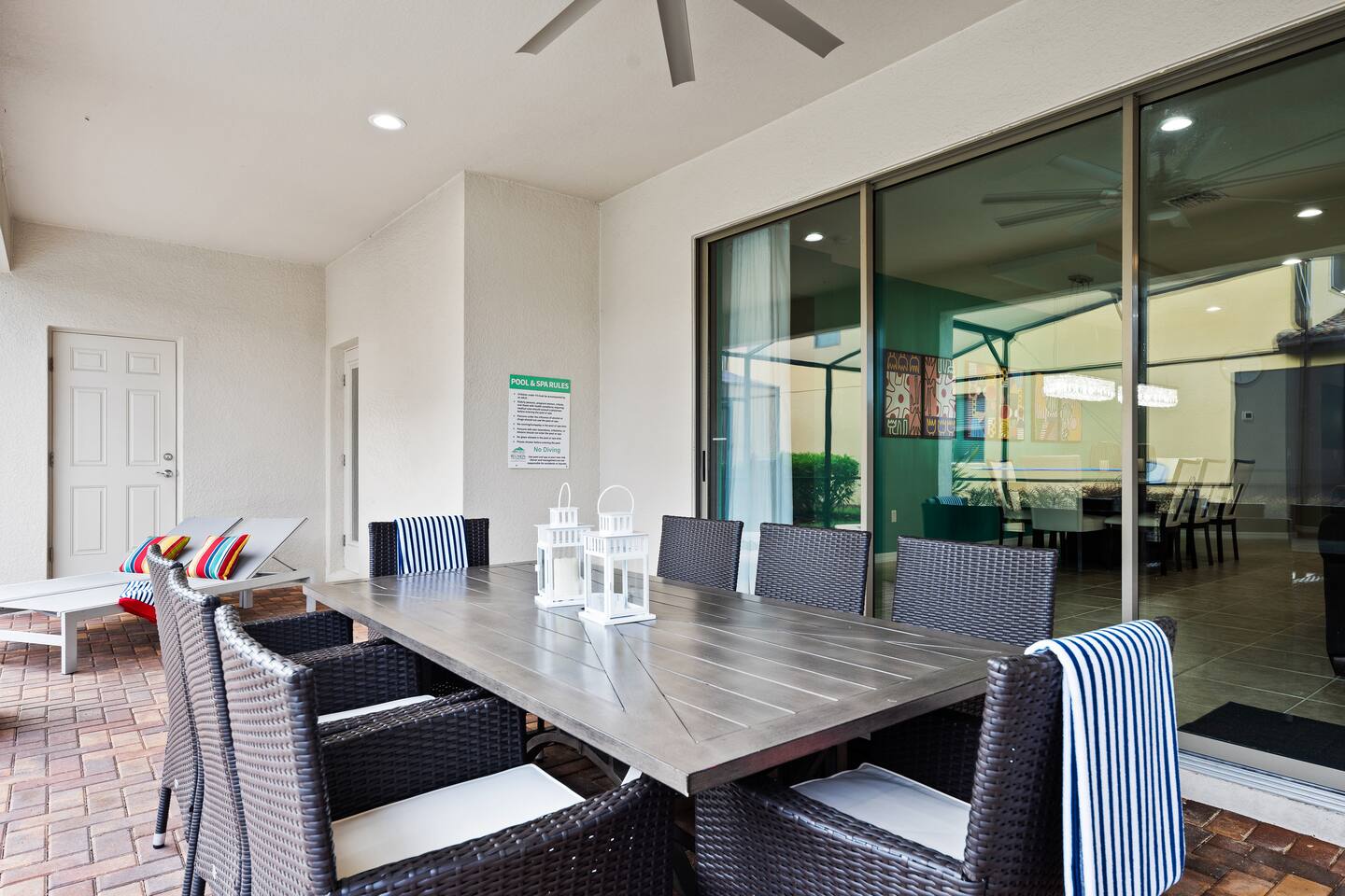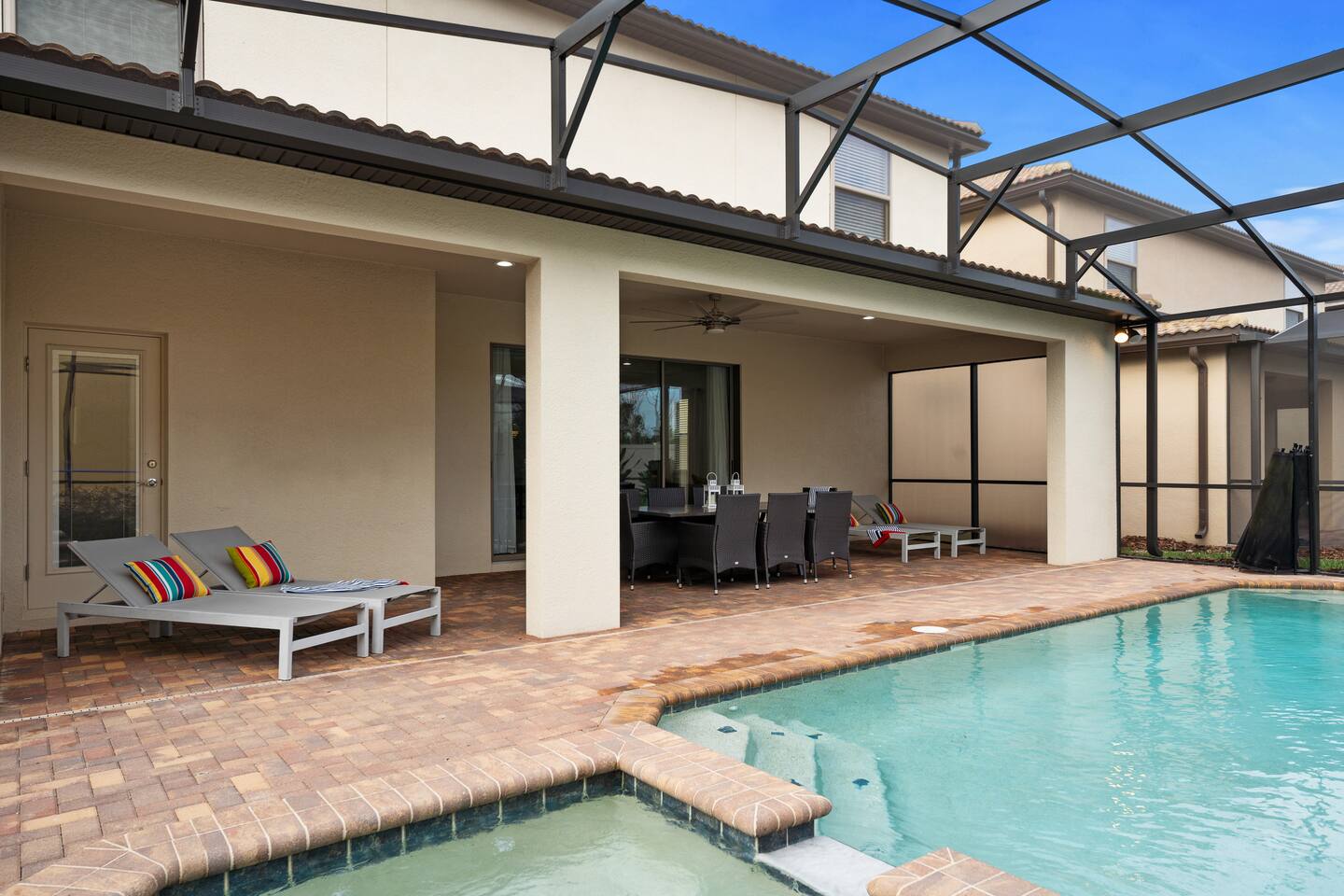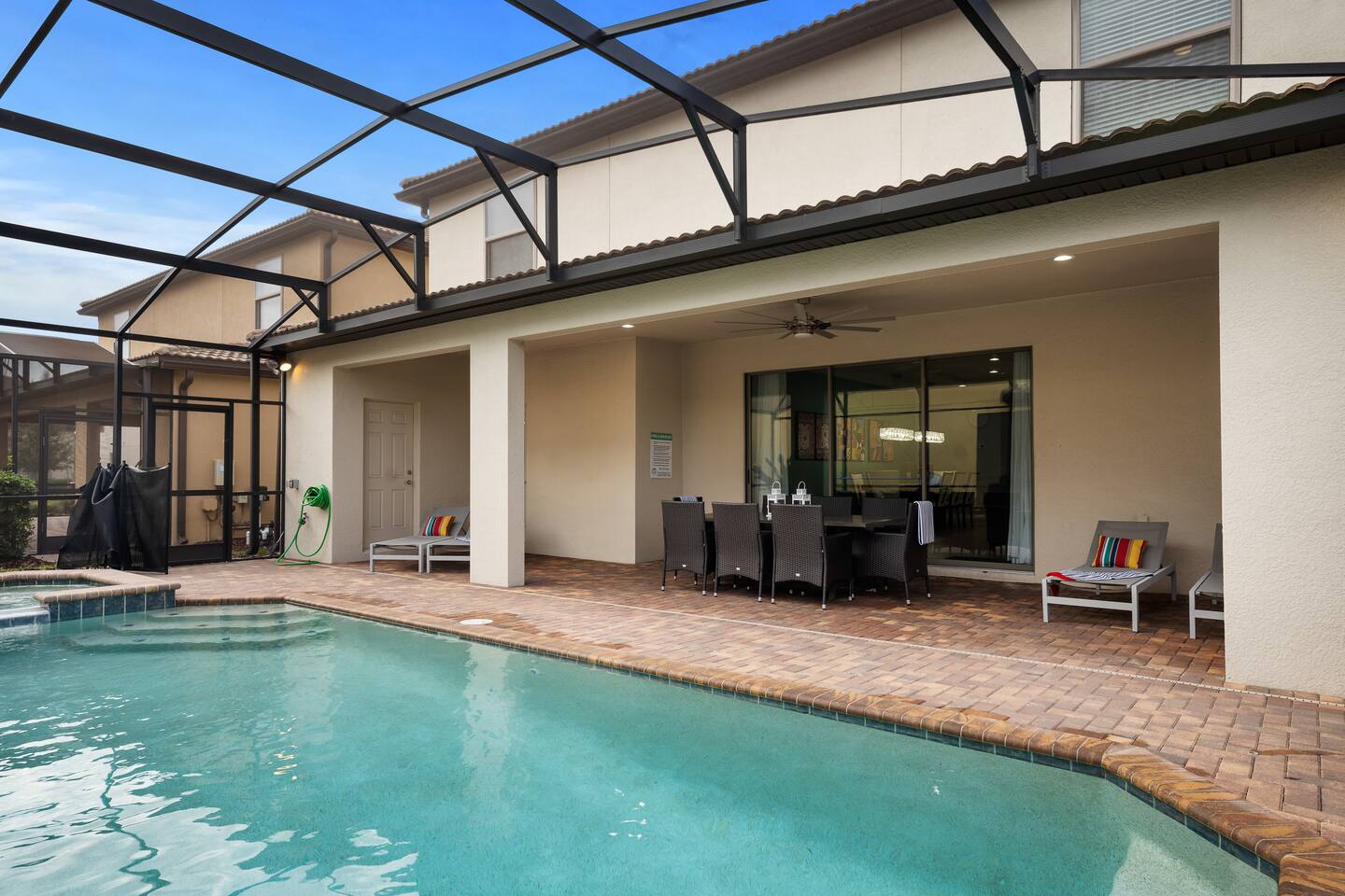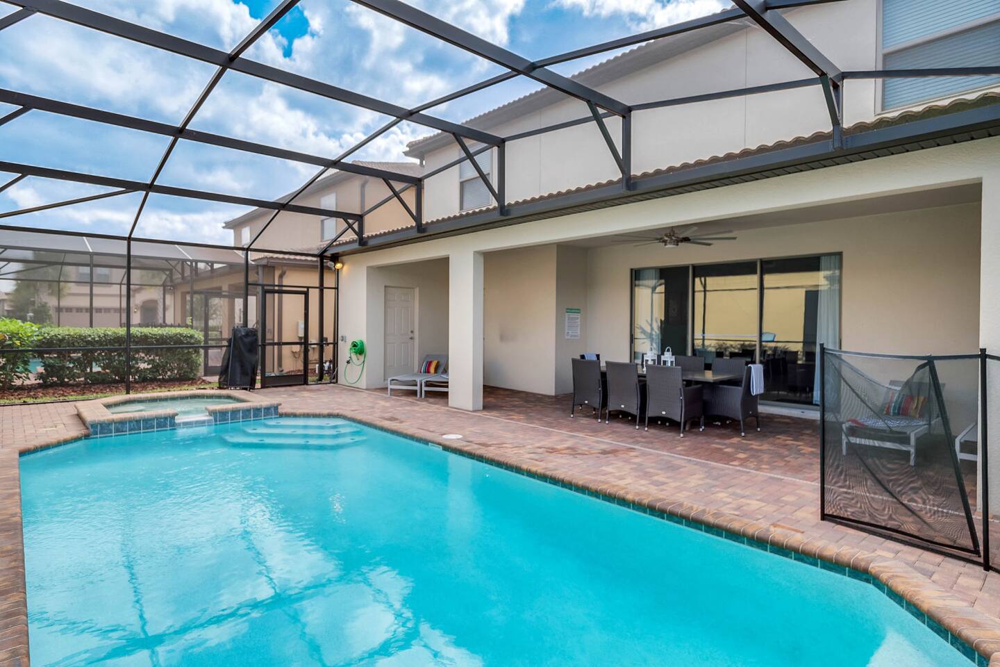 Please remember you're staying in a house, not a hotel. Please treat the space with respect. If any problems arise, we will do our best to take action ASAP, but there is no one living on-site 24/7. IMPORTANT: You will need to provide me with the driver information for each car that will be in your party and the number of guests per car. This must agree with the information put into your reservation information. This information will be checked at the security gate and excess drivers, cars, and guests will not be allowed into the community by security so it is important that this information is accurate. IMPORTANT: We have security cameras at the front entry, garage, and sides of the home. They will be on during your stay. Gated Resort for added security- please provide confirmation of the reservation to the guard. Home has a keypad for easy entry. Pool heat is optional and costs an extra $45 per day+tax (you will receive an invoice after booking should you wish to heat the pool to standard pool temperatures only during daytime hours (not usually necessary May-Sep). We would recommend adding pool and spa heat to your reservation between the months of November and April. ORDERING POOL HEAT: Pool heat available for $45 a day + tax. If you would like the Spa / Hot Tub to be heated you will need to add the pool heat to your reservation. The pool heater operates on a timer and is set to come on in the morning and go off in the evening. (9am-9pm). The spillover spa cannot be heated on its own. The spillover spa is attached to the pool, using the same water. There is no option to only heat the spa since it is the same water as the pool. When pool heating is chosen, the pool will be heated to a temperature around 80-84 degrees Fahrenheit. When in the spa mode, it will be heated up to between 94 - 102 degrees Fahrenheit. If left in spa mode the pool will not be getting any heated water and so the pool will cool down. Pool heat must be purchased before your stay for the entire duration of your stay. In the coldest winter months heating the pool can be difficult as the water temperature drops overnight. Florida has a temperate climate but cold fronts can bring overnight temperatures in the 30`s and 40`s that can last for several days. Unfortunately, under these circumstances there is no way the pool heater will be able to keep the water at a temperature in the mid to high 80`s, especially where pool heat is provided via an electric heat pump if the outside air temperature drops below 55 degrees Fahrenheit. Electric heating pumps do not operate effectively below this temperature, and failure of such devices to heat the pool to the desired temperature is outside of our control and is regarded as an act of nature. Please note that cold weather does NOT constitute a mechanical failure and no refunds will be given for problems that are due to cold weather. ORDERING A BBQ GRILL: The house does not have a grill, but we do have a grill available for rent. Price for the first week: $150 USD and after the first week you can get get another week for $150 or pay each extra day for $30. It is a 4 burner grill (Gas). If interested, you need to notify the host prior to arrival. It is not possible to order a grill once your reservation has started. This is a garden style property. Meaning that there the front and rear have exit points to the outside. Please do not leave any of the doors open as Florida has a climate that has insects all year round and this will allow unwanted entry. STARTER SUPPLIES provided with the home include: 1 Kitchen Paper Towel; 1 Small Bar Soap Per Bath; 1 Toilet Paper Roll Per Bath; 2 Dish Washing Capsules in The Kitchen; Extra Trash Bags; - Please, stop by the nearest Supermarket to gather any additional items you may need for the duration of your stay. (Target – 5.3 Miles), (Publix – 5.3 Miles).