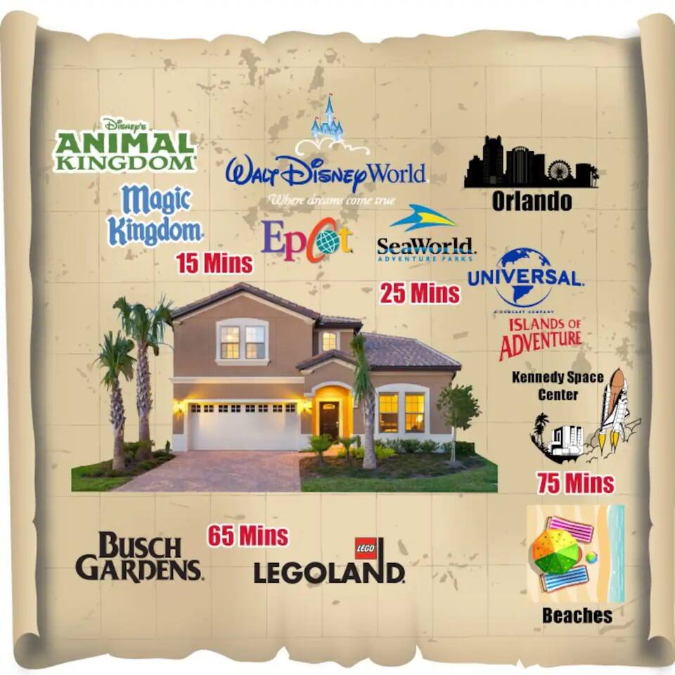 Windsor at Westside is located off of US 192 in the heart of Orlando’s tourist district, just 30 minutes from Orlando International Airport and 8 miles to Walt Disney World theme parks. Resort amenities include: • Resort-style pool with bar and open deck lounge areas • Gated community with gate attendant • Volleyball court and multi-purpose sports courts • Convenience shop for those last minutes items and treats • Arcade and state-of-the-art fitness center • Mediterranean themed tropical clubhouse • Lazy River to float around with friends and family Enjoy all that Orlando has to offer such as the theme parks: Walt Disney World, Universal Studios, Sea World, Legoland, Discovery Cove, Aquatica and other attraction such as I-Drive, City Walk & Disney Springs; Shopping malls such as The Mall at Millenia, The Florida Mall and The Outlet Mall. Sports events include Orlando City soccer and Orlando Magic basketball. Just over an hour drive away you will find some of Florida’s favorite beaches such as Cocoa Beach, Clearwater Beach, St. Pete Beach, New Smyrna Beach & Daytona Beach. This new home has over 4,000+ sq. ft. of luxury living space, and has been professionally furnished with upscale furniture and complimentary entertainment facilities. Distance to local attractions: Disney World (9 miles) SeaWorld (15 miles) Universal Studios (20 miles) Convention Center (12 miles) Legoland (30 miles) Location: Kissimmee – FL. LOCAL RESTAURANTS Wendy's, Pizza Hut, Cici’s Pizza; Burger King, Red Lobster, TGI Friday's; Golden Coral, Cracker Barrel, Dunkin Donuts; Domino's Pizza, Chuy’s (Tex-Mex), Texas Roadhouse; Buffalo Wild Wings, Clay Oven (Indian), IHOP (open 24 hr.); Carrabba's (Italian), Outback Steakhouse, Olive Garden (Italian); Denny’s (open 24 hrs.), Ponderosa Steakhouse. Black Angus Steakhouse; Sakura (Chinese/Korean), McDonald's (open 24 hrs.), Bahama Breeze (Caribbean). GOLF COURSES - Falcon's Fire Golf Course 3200 Seralago Boulevard, Kissimmee, FL 34746 - Celebration Golf Club 701 Golfpark Drive, Kissimmee, FL 34747 - Waldorf Astoria Golf Club 14200 Bonnet Creek Resort Lane, Orlando, FL 32821. - Mystic Dunes Golf Club 7600 Mystic Dunes Ln, Celebration, FL 34747. OUTLETS/SHOPPING - Vineland Premium Outlets 8200 Vineland Avenue, Orlando, FL 32821 - The Mall at Millenia 4200 Conroy Road, Orlando, FL 32839 - Florida Mall 8001 Orange Blossom Trail, Orlando, FL 32809 MEDICAL - Central Care 4320 West Vine Street, Kissimmee, FL 34746 - Florida Hospital Celebration Health 400 Celebration Place, Kissimmee, FL 34747. SUPERMARKETS - Publix (Grocery Store) 14928 E Orange Lake BlvdKissimmee, FL 34747-8210 - Super Target 3200 Rolling Oaks Blvd, Kissimmee, FL 34747 PHARMACY - Walgreens Pharmacy 8265 Champions Gate Blvd, Champions Gate, FL 33896 - CVS Pharmacy 8265 Champions Gate Blvd, Champions Gate, FL 33896 PACKAGES (ONLINE PURCHASES) - You may send packages to the home during your stay. They will be left on the doorstep. - If the online seller uses USPS, it will not get delivered as the Post Office does not recognize VACATION HOMES as regular addresses and the package will be returned back to the sender. UPS, DHL and FEDEX will leave it at the door step. HOUSEKEEPING: There is no daily housekeeping service provided in the rental rate. Mid-stay cleaning services during your stay can be requested for an additional fee. FOOD: As per Florida law, we are not allowed to leave open food in the refrigerators or kitchen closets, hence, all food items will be removed after the guest checks out and no supply of items such as condiments, coffee powder will be provided prior to check in. TRASH DISPOSAL: Please observe trash collection days and place trash in the resort dumpster daily to keep a clean home.