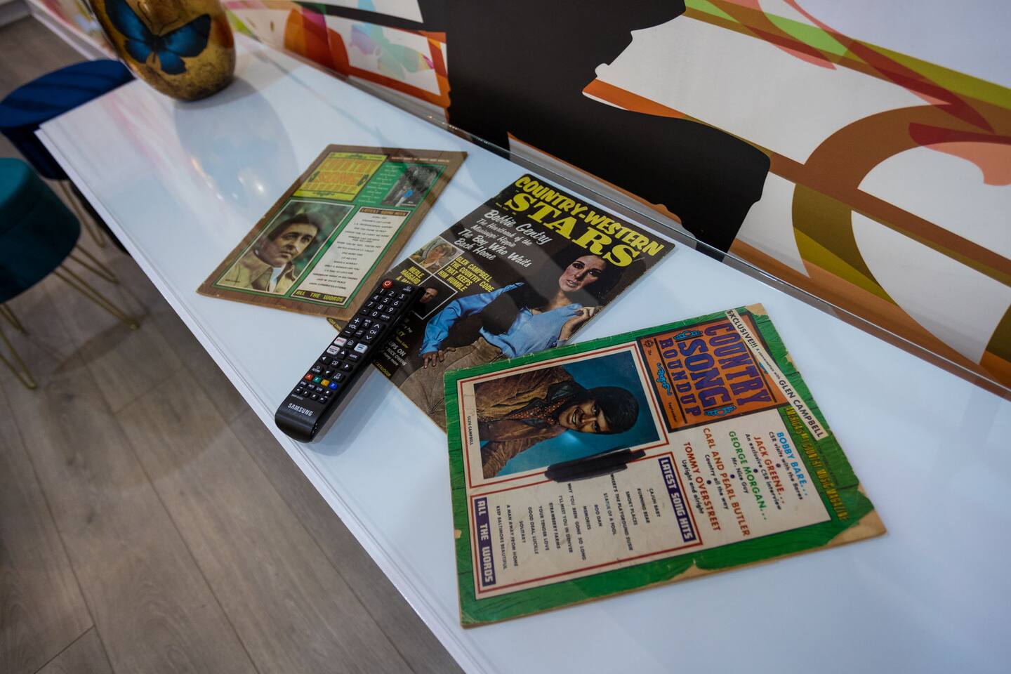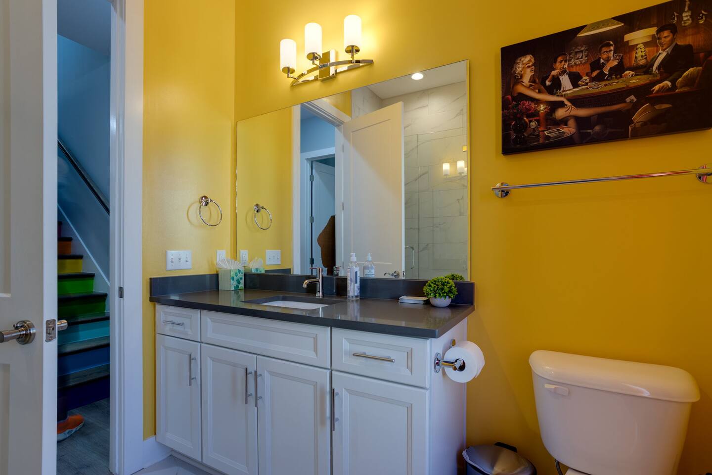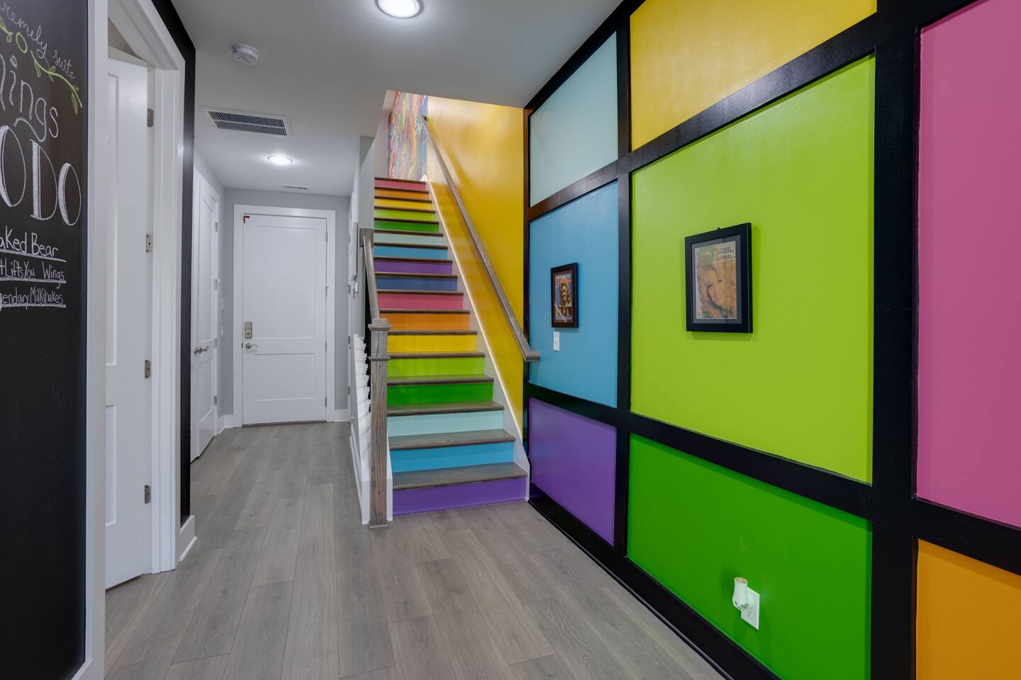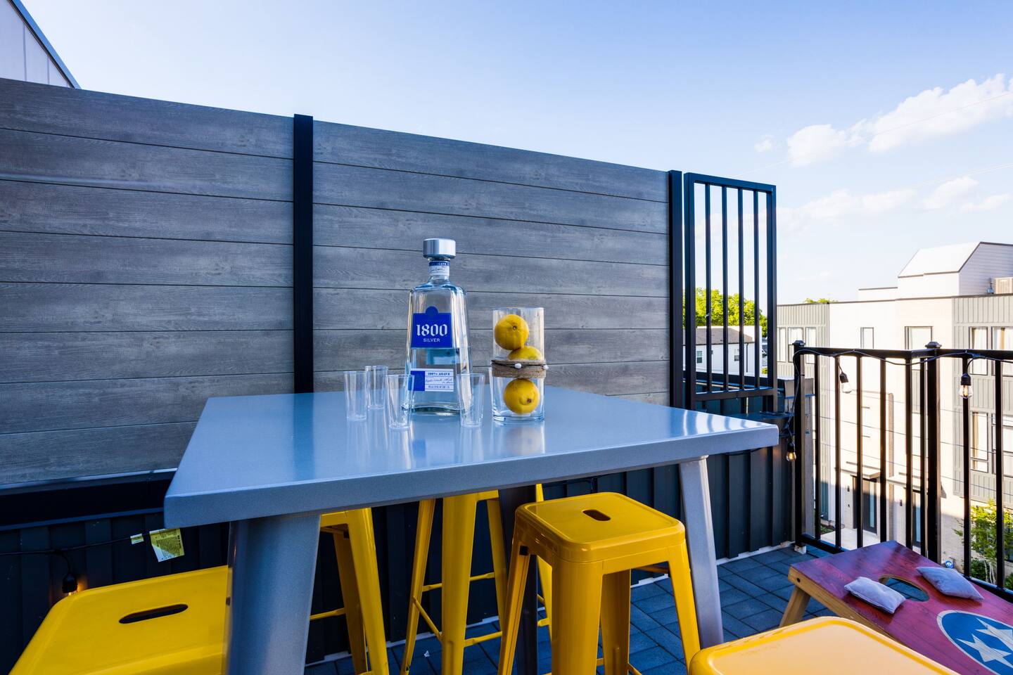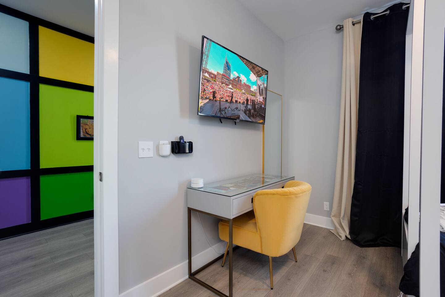 Live within a true work of art and indulge your FIVE senses when you book this stunning luxury rental, "The Six1five"! Floor to ceiling wall designs of iconic Music City themed decor don this stunning 4 bedroom, and 4 bathroom home, making literally every corner of this space a conversation piece to muse about! This home’s sweeping modern architecture also features walls of glass, custom built-in closets, a massive rooftop terrace with downtown views and a garage game room.