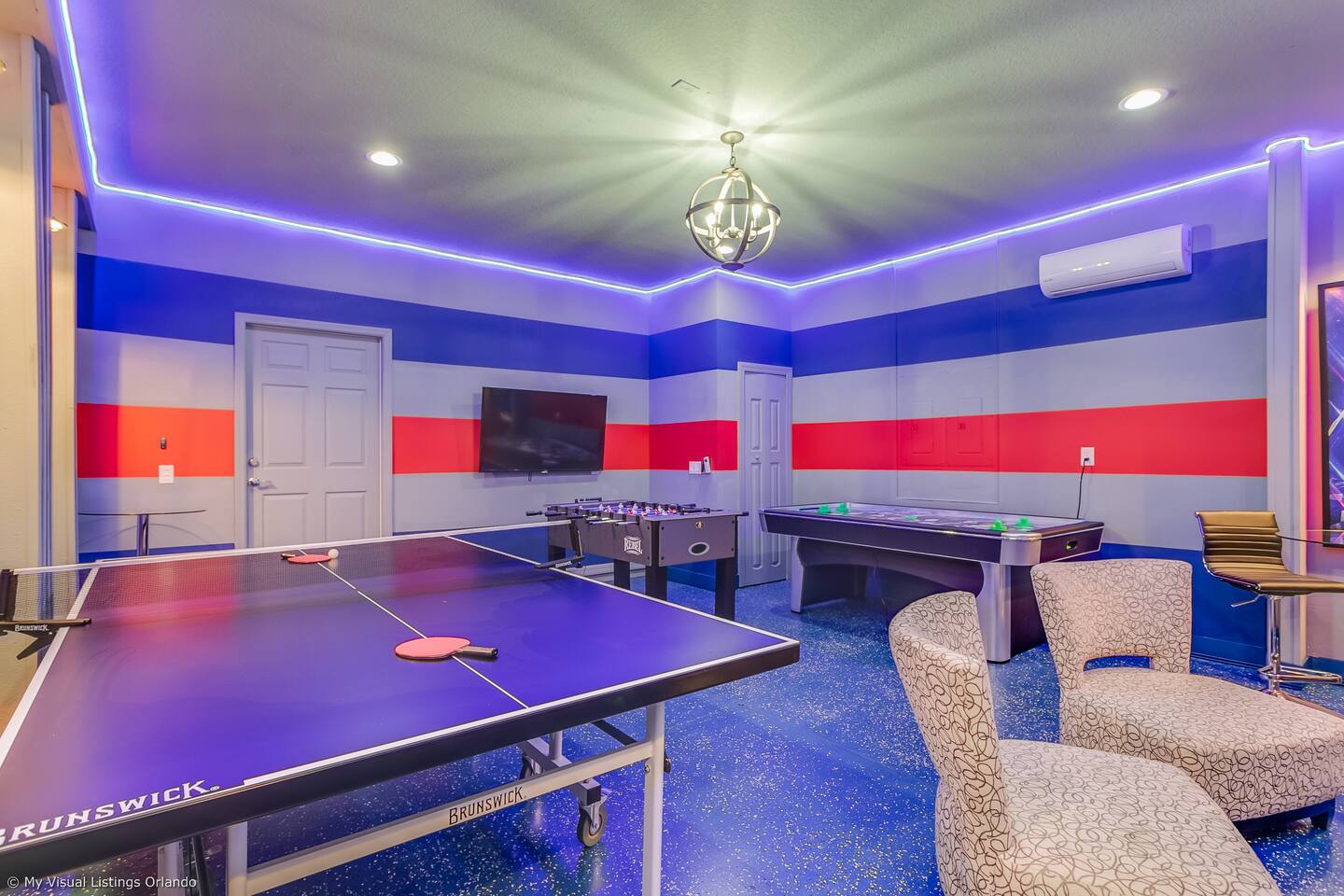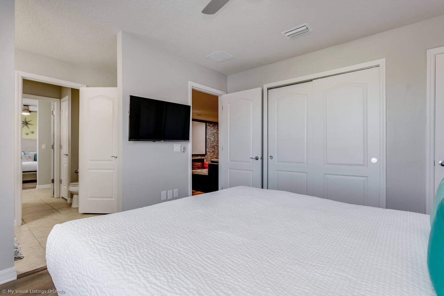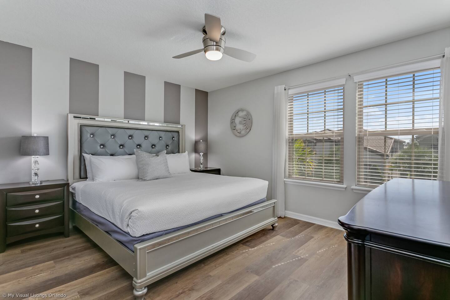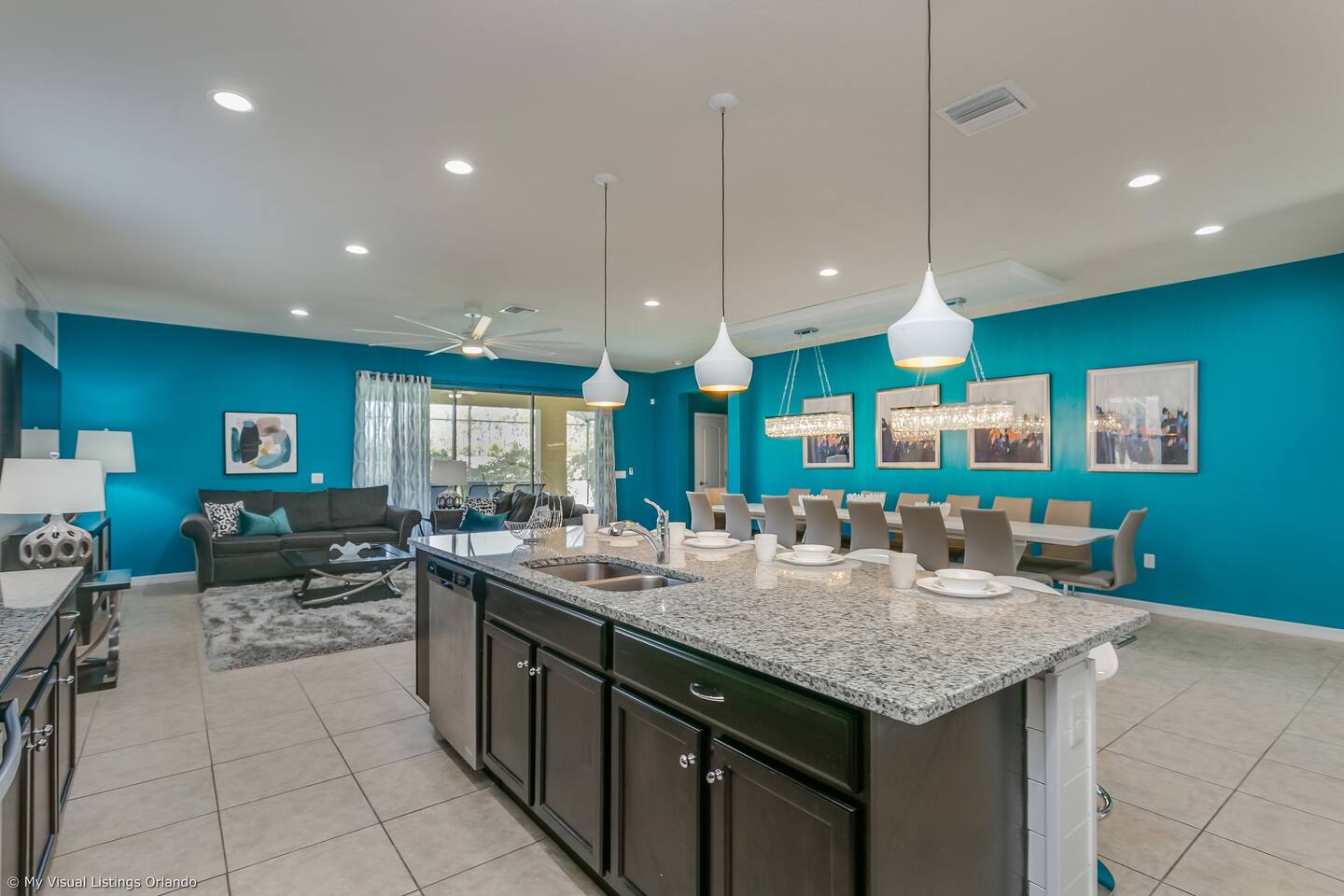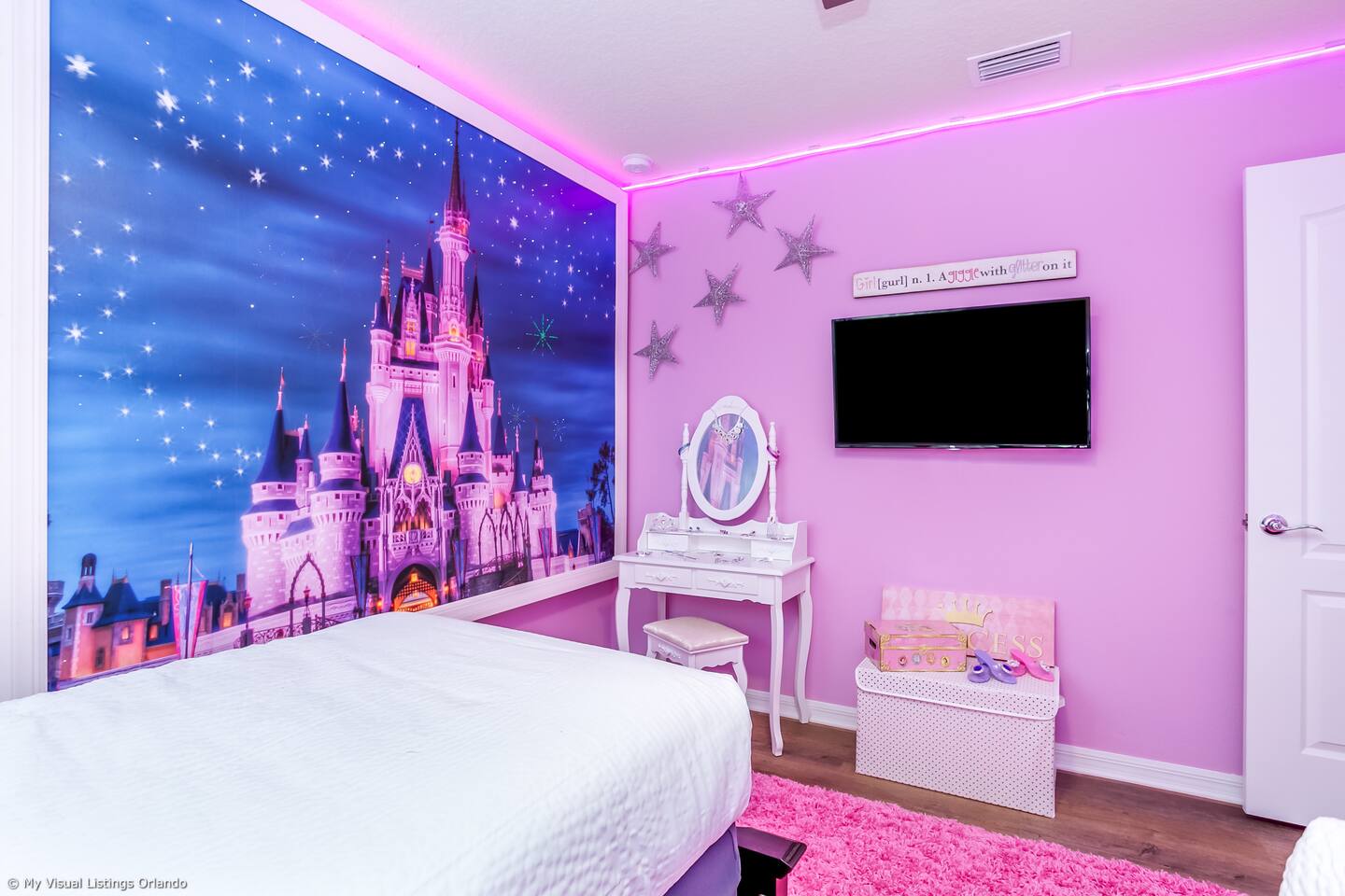 The Southern Wonder of the World | Must See - One of the Best Homes in Windsor at Westside Property Summary Professionally designed and furnished by one of the country’s foremost and world renowned design experts the appropriately named, Southern Wonder of the World, is one of Florida’s most unique vacation properties. The property has all that a family or large group needs for a completely immersive entertainment experience. With a private swimming pool, luxurious bedroom furnishings, themed kids rooms, State of the Art game room, and Movie Theater room, you can spend a whole day relaxing or having fun. With 4,000+ sq. ft. to share with your family or group coupled with the pool deck, this home holds up to 16+ guests. The home is also hypoallergenic with no carpeting in the home and a ceiling fan in each bedroom to aide fresh air flow throughout the home. The home is a short walk from the state-of the art clubhouse at Windsor at Westside. What a great place for families to share! The game room is air-conditioned and fully stocked with action! Feeling competitive? Up for some games? Here you can find foosball, Marvel Air Hockey, Ping-pong, an XBOX station with a large screen TV, and an additional large flat screen TV for watching your favorite movies or sports. Be amazed and immerse yourself in the “Marvel” room and be sure to take a picture next to your favorite Marvel character! The pool area is where you can enjoy the sun, the fresh air, and the refreshing pool water. There are sun loungers and a spillover spa for complete relaxation. For added safety, the pool deck comes equipped with a safety fence. The kitchen is fully equipped with all of your needs from stainless steel appliances, to a toaster and coffee maker. The home has a spacious open floor plan and sits on one of the best lots in Windsor at Westside. The dining area has seating for 16+ where bellies are made full and memories are sure to be created. The breakfast bar also has 4 amazing bar stools to accommodate more family time together. The living room has a huge modern 84" fan. By day watch your favorite shows on the wall mounted 75" LED TV, then in the evenings enjoy movies and sports on the 120" projector screen complete with theater-like seating, complete state of the art surround sound system, and subwoofer. Upstairs there is a huge Princess immersive experience themed kids bedroom complete with dynamic fiber optic lighting, hand painted effects, LED lighting, Princess themed dynamic effects, and other Princess amazement. There is also an amazing custom-built Monsters themed bedroom complete with custom LED lighting, kids toys, special themed furniture, custom painted walls, murals, and custom shelving. Features: • 8 Bedrooms and 6 Full Bathrooms • Covered Lanai with Heated Pool/Spa (no rear neighbors for privacy) • Outside Dining Table and Dining Bar • Well equipped Kitchen with Counter Stools and Extra-Large Dining Table • Large Gathering Room with 75” 4k Smart TV/Multi-Region Blu Ray • Second Floor Games Room with Movie Theater • Xbox 360 • Surround Sound System • Poker and numerous Board Games and DVDs to cater for all ages • Additional Games Room with Table Tennis, Foosball, and Air Hockey • Smart TVs with Netflix in every Bedroom • Complimentary Cable TV, High-Speed WIFI and free calls to Canada and U.S. • A/C and ceiling fans in every room to maximize comfort • Baby equipment provided at no charge (pack and play, highchair) • Full Washer/Dryer, Linen and Towels provided • Hair Dryers, Ironing Board & Iron Sleeps 16: • Suite 1- King Bed • Suite 2- King Bed • Suite 3- King Bed • Suite 4- Queen Bed • Bed 5- Two Twin Beds • Bed 6- Two Twin Beds • Bed 7- Queen Bed • Bed 8- Queen Bed