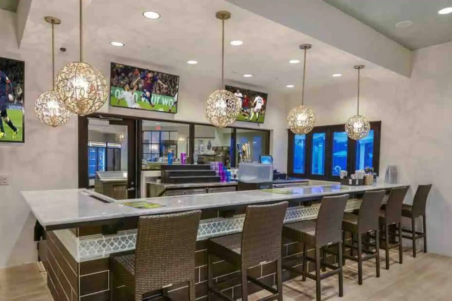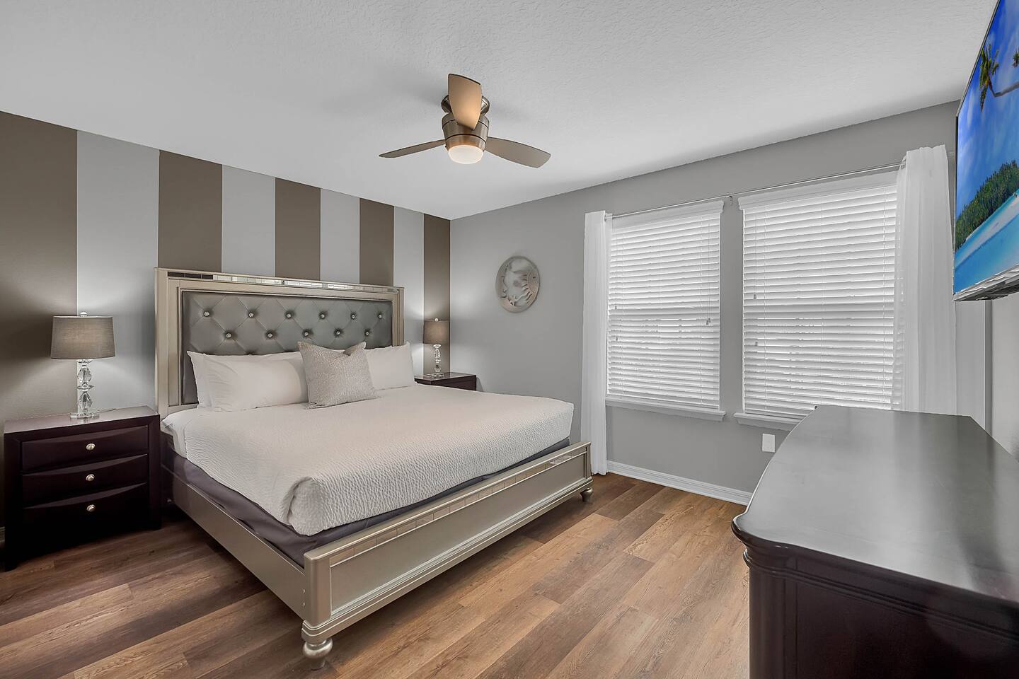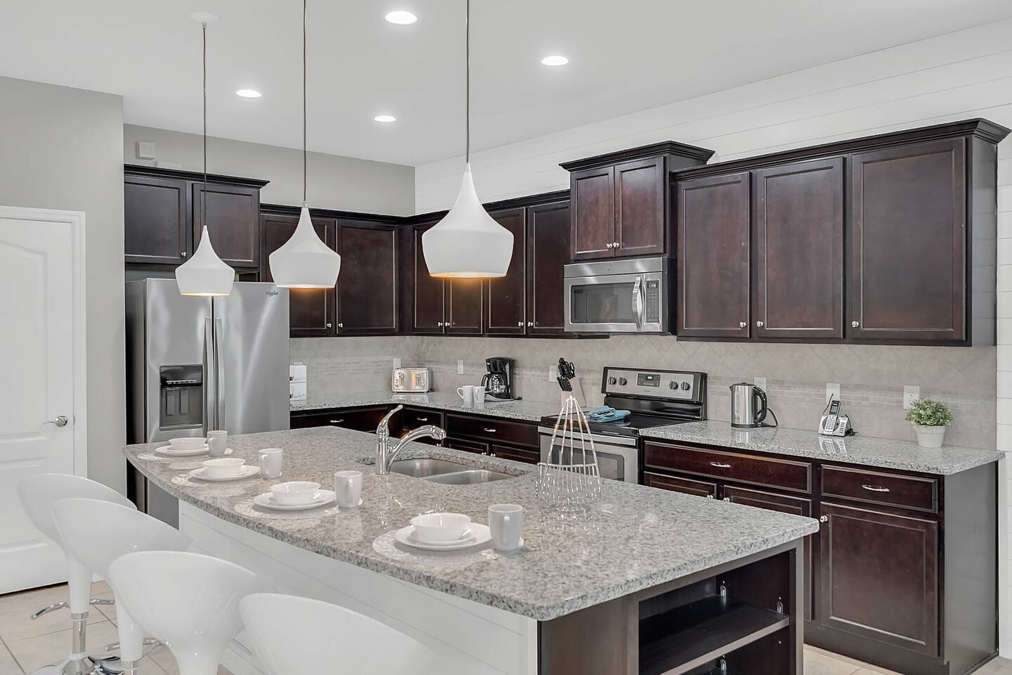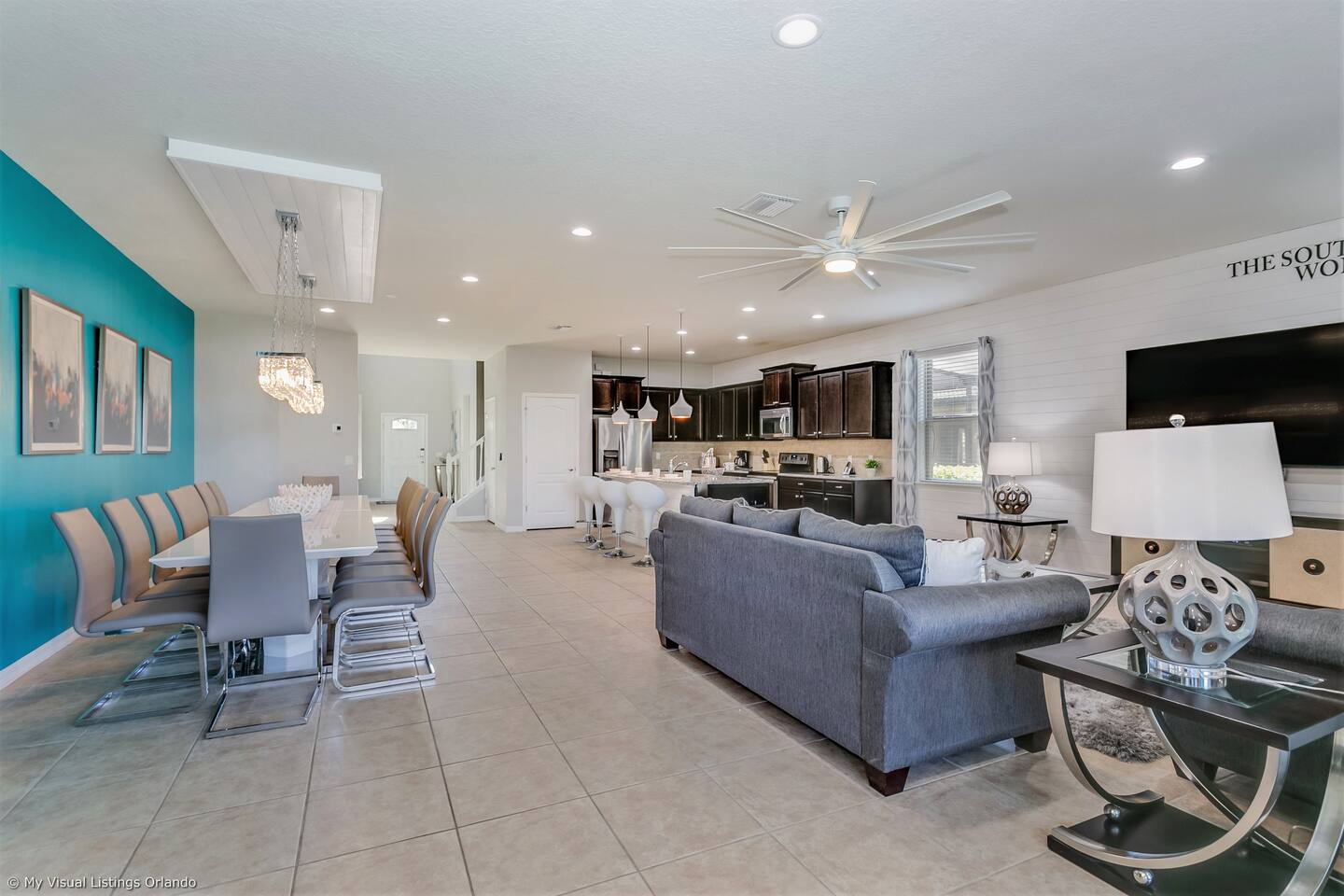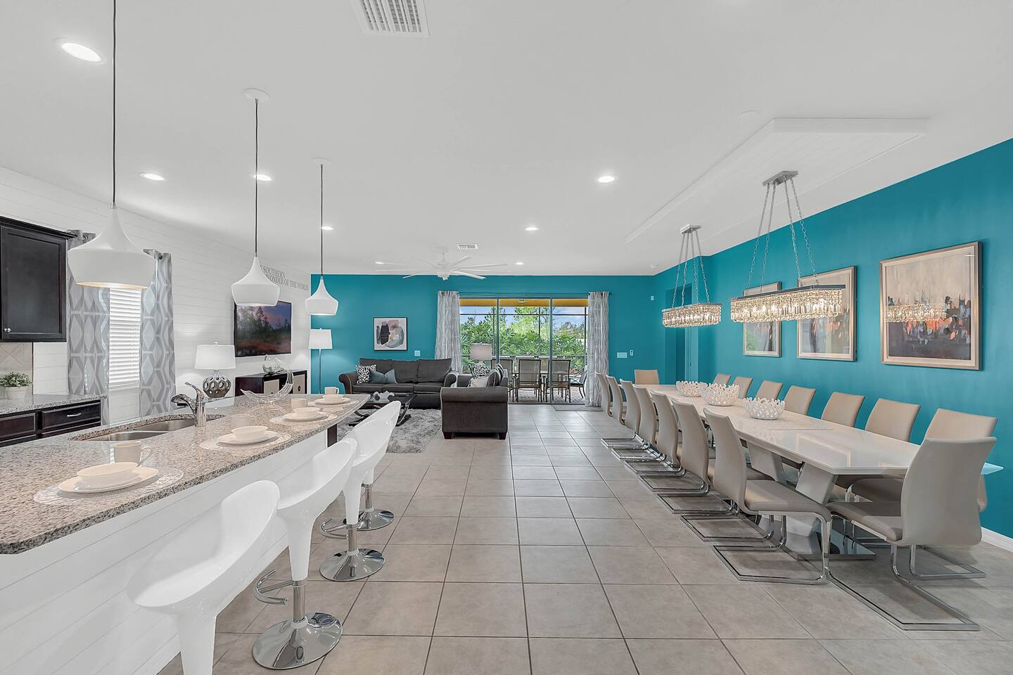The Southern Wonder of the World | Must See - One of the Best Homes in Windsor at Westside Property Summary Professionally designed and furnished by one of the country’s foremost and world renowned design experts the appropriately named, Southern Wonder of the World, is one of Florida’s most unique vacation properties. The property has all that a family or large group needs for a completely immersive entertainment experience. With a private swimming pool, luxurious bedroom furnishings, themed kids rooms, State of the Art game room, and Movie Theater room, you can spend a whole day relaxing or having fun. With 4,000+ sq. ft. to share with your family or group coupled with the pool deck, this home holds up to 16+ guests. The home is also hypoallergenic with no carpeting in the home and a ceiling fan in each bedroom to aide fresh air flow throughout the home. The home is a short walk from the state-of the art clubhouse at Windsor at Westside. What a great place for families to share! The game room is air-conditioned and fully stocked with action! Feeling competitive? Up for some games? Here you can find foosball, Marvel Air Hockey, Ping-pong, an XBOX station with a large screen TV, and an additional large flat screen TV for watching your favorite movies or sports. Be amazed and immerse yourself in the “Marvel” room and be sure to take a picture next to your favorite Marvel character! The pool area is where you can enjoy the sun, the fresh air, and the refreshing pool water. There are sun loungers and a spillover spa for complete relaxation. For added safety, the pool deck comes equipped with a safety fence. The kitchen is fully equipped with all of your needs from stainless steel appliances, to a toaster and coffee maker. The home has a spacious open floor plan and sits on one of the best lots in Windsor at Westside. The dining area has seating for 16+ where bellies are made full and memories are sure to be created. The breakfast bar also has 4 amazing bar stools to accommodate more family time together. The living room has a huge modern 84" fan. By day watch your favorite shows on the wall mounted 75" LED TV, then in the evenings enjoy movies and sports on the 120" projector screen complete with theater-like seating, complete state of the art surround sound system, and subwoofer. Upstairs there is a huge Princess immersive experience themed kids bedroom complete with dynamic fiber optic lighting, hand painted effects, LED lighting, Princess themed dynamic effects, and other Princess amazement. There is also an amazing custom-built Monsters themed bedroom complete with custom LED lighting, kids toys, special themed furniture, custom painted walls, murals, and custom shelving. Features: • 8 Bedrooms and 6 Full Bathrooms • Covered Lanai with Heated Pool/Spa (no rear neighbors for privacy) • Outside Dining Table and Dining Bar • Well equipped Kitchen with Counter Stools and Extra-Large Dining Table • Large Gathering Room with 75” 4k Smart TV/Multi-Region Blu Ray • Second Floor Games Room with Movie Theater • Xbox 360 • Surround Sound System • Poker and numerous Board Games and DVDs to cater for all ages • Additional Games Room with Table Tennis, Foosball, and Air Hockey • Smart TVs with Netflix in every Bedroom • Complimentary Cable TV, High-Speed WIFI and free calls to Canada and U.S. • A/C and ceiling fans in every room to maximize comfort • Baby equipment provided at no charge (pack and play, highchair) • Full Washer/Dryer, Linen and Towels provided • Hair Dryers, Ironing Board & Iron Sleeps 16: • Suite 1- King Bed • Suite 2- King Bed • Suite 3- King Bed • Suite 4- Queen Bed • Bed 5- Two Twin Beds • Bed 6- Two Twin Beds • Bed 7- Queen Bed • Bed 8- Queen Bed