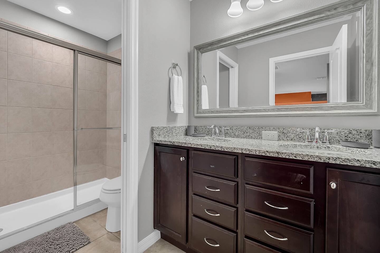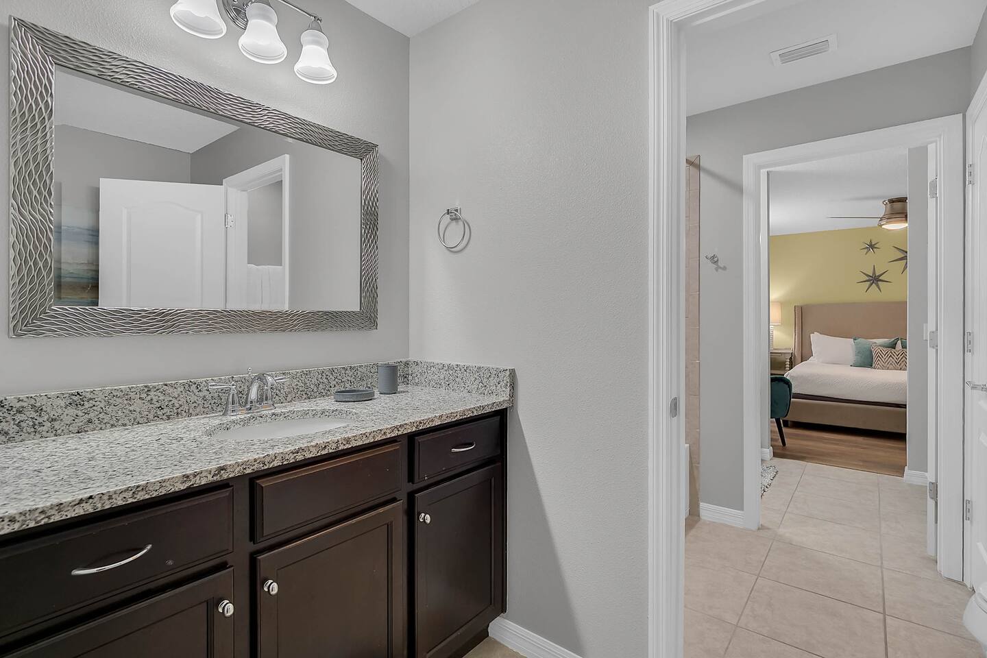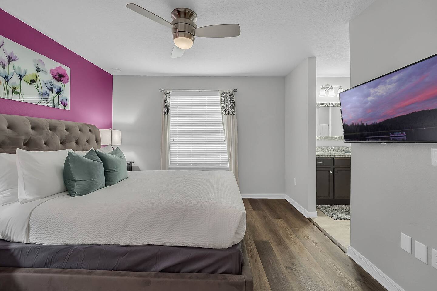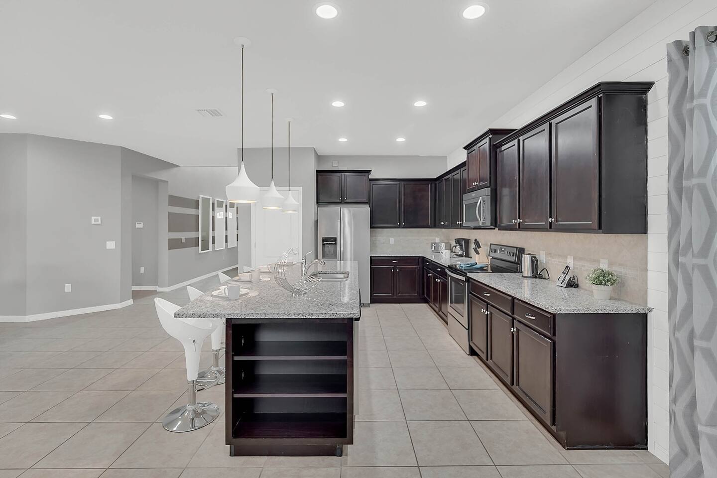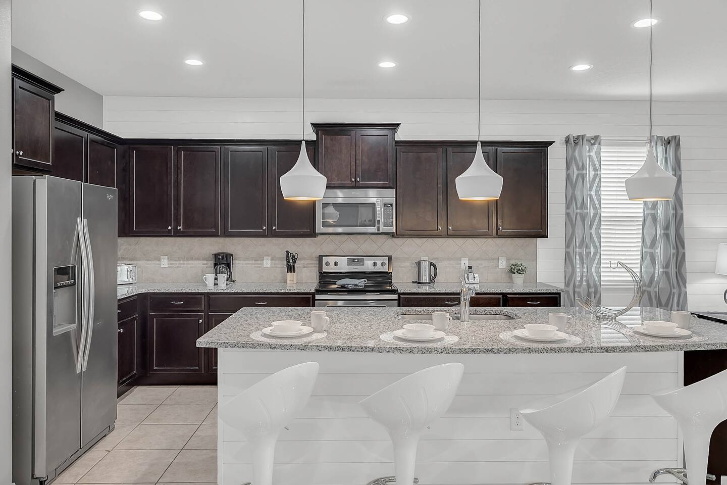 The Southern Wonder of the World | Must See - One of the Best Homes in Windsor at Westside Property Summary Professionally designed and furnished by one of the country’s foremost and world renowned design experts the appropriately named, Southern Wonder of the World, is one of Florida’s most unique vacation properties. The property has all that a family or large group needs for a completely immersive entertainment experience. With a private swimming pool, luxurious bedroom furnishings, themed kids rooms, State of the Art game room, and Movie Theater room, you can spend a whole day relaxing or having fun. With 4,000+ sq. ft. to share with your family or group coupled with the pool deck, this home holds up to 16+ guests. The home is also hypoallergenic with no carpeting in the home and a ceiling fan in each bedroom to aide fresh air flow throughout the home. The home is a short walk from the state-of the art clubhouse at Windsor at Westside. What a great place for families to share! The game room is air-conditioned and fully stocked with action! Feeling competitive? Up for some games? Here you can find foosball, Marvel Air Hockey, Ping-pong, an XBOX station with a large screen TV, and an additional large flat screen TV for watching your favorite movies or sports. Be amazed and immerse yourself in the “Marvel” room and be sure to take a picture next to your favorite Marvel character! The pool area is where you can enjoy the sun, the fresh air, and the refreshing pool water. There are sun loungers and a spillover spa for complete relaxation. For added safety, the pool deck comes equipped with a safety fence. The kitchen is fully equipped with all of your needs from stainless steel appliances, to a toaster and coffee maker. The home has a spacious open floor plan and sits on one of the best lots in Windsor at Westside. The dining area has seating for 16+ where bellies are made full and memories are sure to be created. The breakfast bar also has 4 amazing bar stools to accommodate more family time together. The living room has a huge modern 84" fan. By day watch your favorite shows on the wall mounted 75" LED TV, then in the evenings enjoy movies and sports on the 120" projector screen complete with theater-like seating, complete state of the art surround sound system, and subwoofer. Upstairs there is a huge Princess immersive experience themed kids bedroom complete with dynamic fiber optic lighting, hand painted effects, LED lighting, Princess themed dynamic effects, and other Princess amazement. There is also an amazing custom-built Monsters themed bedroom complete with custom LED lighting, kids toys, special themed furniture, custom painted walls, murals, and custom shelving. Features: • 8 Bedrooms and 6 Full Bathrooms • Covered Lanai with Heated Pool/Spa (no rear neighbors for privacy) • Outside Dining Table and Dining Bar • Well equipped Kitchen with Counter Stools and Extra-Large Dining Table • Large Gathering Room with 75” 4k Smart TV/Multi-Region Blu Ray • Second Floor Games Room with Movie Theater • Xbox 360 • Surround Sound System • Poker and numerous Board Games and DVDs to cater for all ages • Additional Games Room with Table Tennis, Foosball, and Air Hockey • Smart TVs with Netflix in every Bedroom • Complimentary Cable TV, High-Speed WIFI and free calls to Canada and U.S. • A/C and ceiling fans in every room to maximize comfort • Baby equipment provided at no charge (pack and play, highchair) • Full Washer/Dryer, Linen and Towels provided • Hair Dryers, Ironing Board & Iron Sleeps 16: • Suite 1- King Bed • Suite 2- King Bed • Suite 3- King Bed • Suite 4- Queen Bed • Bed 5- Two Twin Beds • Bed 6- Two Twin Beds • Bed 7- Queen Bed • Bed 8- Queen Bed